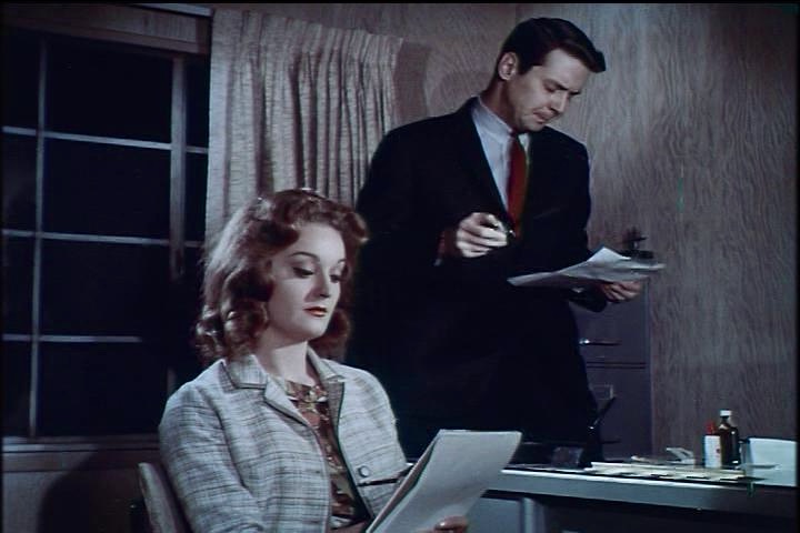 Under the guise of a stenographers-for-hire service that operates around the clock, Joan recruits a growing number of married housewives, providing them with beauty salon makeovers, new wardrobes, and even babysitting service in exchange for a percentage of their profits. As her operation grows, the business model also utilizes a local bar/hotel as a business rendezvous point (with the bartender as a key player) and the participation of Al (John Aristedes), the married golf pro at the country club, who is friendly with the wealthiest and most prominent members. Joan’s operation grows in leaps and bounds until an anonymous source informs two vice cops of the true nature of Ms. Rand’s stenographic service.