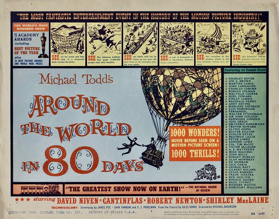 All of us have probably walked out on a movie at the theatre at some point in our lives but how often have you been forced to leave a film due to circumstances beyond your control? The few times this has happened to me are ingrained in my memory probably because it was such a rare occurrence…and because the interrupted scene and the movie itself never received the proper closure. In other words, a simple case of cinema interruptus (the Latin word for interrupted). The films in question are Around the World in 80 Days (1956), Cat on a Hot Tin Roof (1958), Don’t Give Up the Ship (1959) and Cat Ballou (1965).