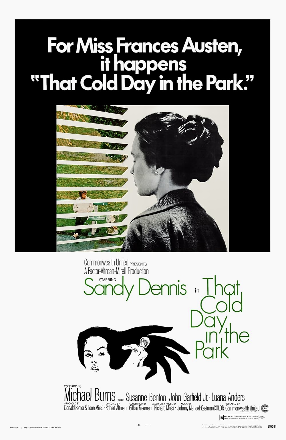 Most film critics and movie lovers point to Nashville (1975) as Robert Altman’s masterpiece, although I’ve always been partial to his unique spin on the Western, McCabe and Mrs. Miller (1971). I also admire an earlier film that he directed that was conspicuously absent or missing from his filmography in most of the obituaries on the director after he died. That Cold Day in the Park was made between Countdown (1967) and M*A*S*H* (1970) in 1969 and was based on a novel by Richard Miles. The screenplay was by British screenwriter Gillian Freeman, who had written the novel and film adaptation of The Leather Boys (1964), Sidney J. Furie’s drama about a troubled working class marriage and the husband’s friendship with a closeted gay biker.