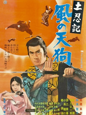 The samurai film in Japanese cinema was often classified as a chanbara, a sub-category of the jidai-geki (period drama) which was more action oriented. The chanbara was at the peak of its popularity in Japan from the early 50s to the early 70s with occasional revivals of the form up through the present and some of the most famous examples of the genre are Teinosuke Kinugasa’s Gate of Hell (1954), Hiroshi Inagaki’s Samurai Trilogy (1954-1956), and Akira Kurosawa’s Seven Samurai (1954) and Yojimbo (1961). One aspect of the samurai film that always struck me was that it seemed like a period variation on the American western and the fact that Kurosawa was a huge fan of director John Ford seems obvious when you look at Seven Samurai and Yojimbo, whose main protagonists are samurai-for-hire, not unlike professional gunfighters or bounty hunters in the wild west. Both of Kurosawa’s films went on to inspire two popular westerns respectively – John Sturges’s The Magnificent Seven (1960) and Sergio Leone’s A Fistful of Dollars (1964). Reminiscent of Kurosawa’s chanbara efforts is Haunted Samurai (Japan title: Kaze no Tengu, 1970), an often overlooked samurai action-adventure from director Keiichi Ozawa that came toward the tail end of the genre’s peak period but also seems custom made for an American western remake.
