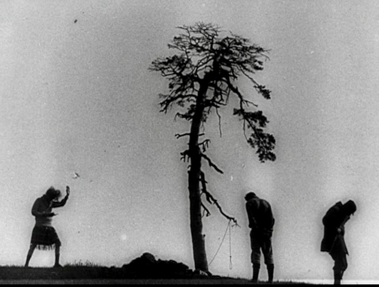 Kuleshov approached By the Law as an experiment and was able to raise funding for it because it had a small cast and just a few locations but the film is not just an exercise in shadow, light and potent visual compositions. It works as an intense human drama and Kuleshovs’ style of mixing extreme close-ups with body movements and the odd detail (a pot of soup boiling over, a pair of bound feet trying to wiggle out of the restraints, a stark tree designated for a hanging) makes the movie compelling on the level of a psychological thriller.