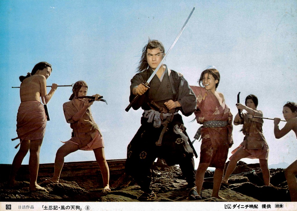 The samurai film in Japanese cinema was often classified as a chanbara, a sub-category of the jidai-geki (period drama) which was more action oriented. The chanbara was at the peak of its popularity in Japan from the early 50s to the early 70s with occasional revivals of the form up through the present and some of the most famous examples of the genre are Teinosuke Kinugasa’s Gate of Hell (1954), Hiroshi Inagaki’s Samurai Trilogy (1954-1956), and Akira Kurosawa’s Seven Samurai (1954) and Yojimbo (1961). One aspect of the samurai film that always struck me was that it seemed like a period variation on the American western and the fact that Kurosawa was a huge fan of director John Ford seems obvious when you look at Seven Samurai and Yojimbo, whose main protagonists are samurai-for-hire, not unlike professional gunfighters or bounty hunters in the wild west. Both of Kurosawa’s films went on to inspire two popular westerns respectively – John Sturges’s The Magnificent Seven (1960) and Sergio Leone’s A Fistful of Dollars (1964). Reminiscent of Kurosawa’s chanbara efforts is Haunted Samurai (Japan title: Kaze no Tengu, 1970), an often overlooked samurai action-adventure from director Keiichi Ozawa that came toward the tail end of the genre’s peak period but also seems custom made for an American western remake.
