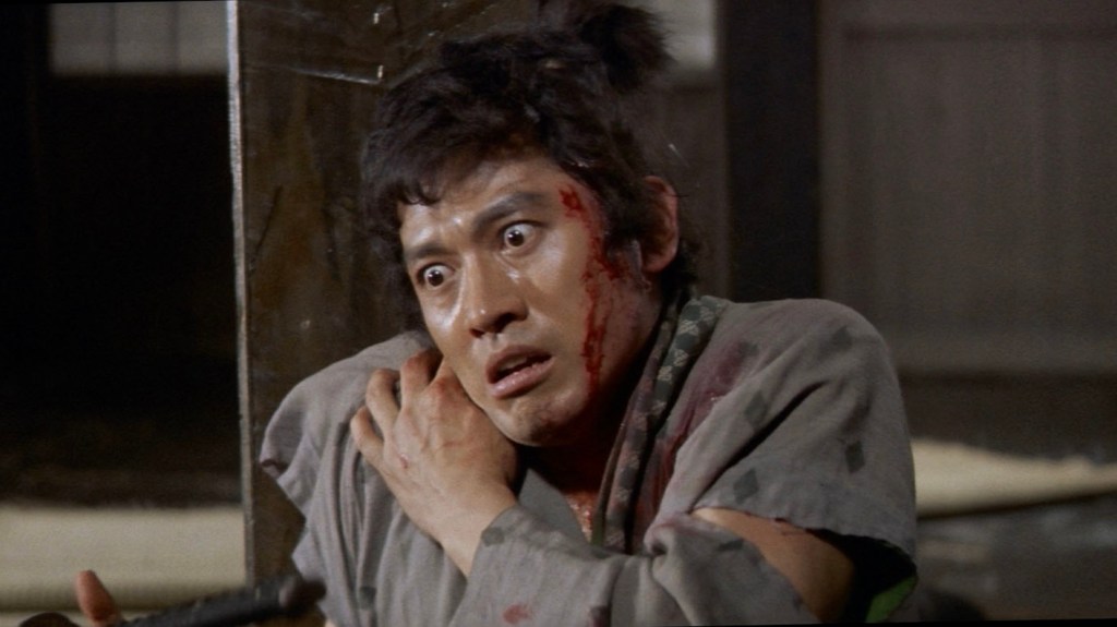 Hideki Takahashi is impressive as the stoic and formidable hero who occasionally shows glimpses of the compassion and guilt that lurk beneath his fierce façade. His portrayal makes a striking contrast against Isao Natsuyagi’s feral and relentless pursuer Uzuki. Seiichiro Kameishi is also mesmerizing as the suspicious and deceptive Tarao and Utako Shibusawa as his wife Oryo has a memorable scene in which she tries to poison and kill Rokuheita.