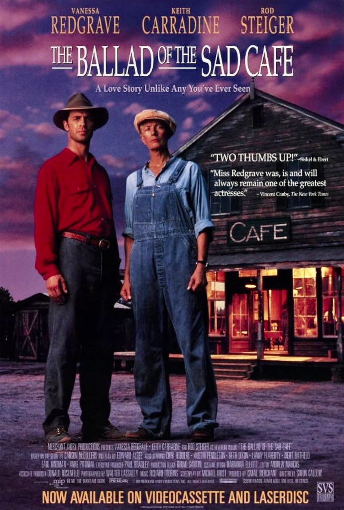 At the same time, there were several positive notices such as Variety which said, “Simon Callow makes an assured feature directing debut adapting Carson McCullers’ novella The Ballad of the Sad Cafe, a demanding, abstract fable. Redgrave’s body English, strange accent and physical outbursts are a triumph of pure acting. Carradine’s more natural approach helps bring pic closer to reality.” And Roger Ebert of the Chicago Sun Times, noted “…it plays well, if you can dismiss from your mind any remote expectation that the behavior in the film will mirror life as we know it. And Vanessa Redgrave, imperious and vibrating with passion, makes a proud, sad Miss Amelia.”