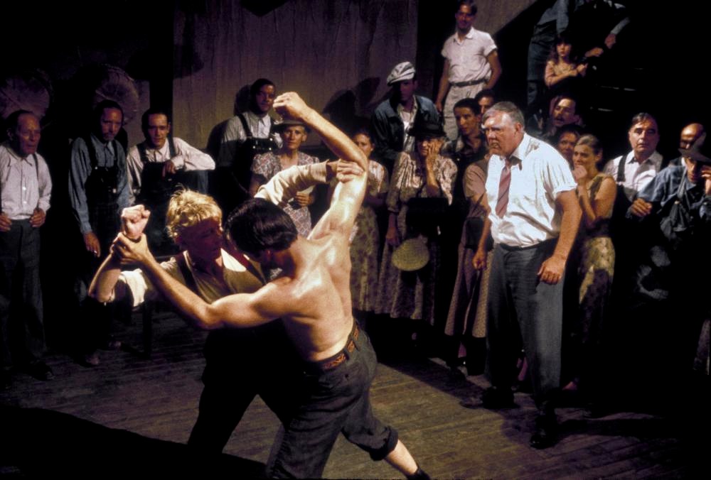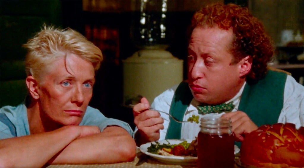 As Miss Amelia falls under Cousin Lymon’s spell, her stern, no-nonsense demeanor and rough facade begin to soften and she even starts wearing a dress. Her cousin also encourages her to transform the general store into a café that serves food and liquor and it quickly becomes a social hub for the town. While it is obvious that Miss Amelia is transformed by her all consuming love for Cousin Lymon, he seems indifferent to her adoration and takes full advantage of the situation, settling into a life of ease. It is only when an ex-convict named Marvin Macy (Keith Carradine) drifts into town with a distinct agenda that the dynamic between Miss Amelia and Cousin Lymon changes. Marvin turns out to be Miss Amelia’s former husband and was kicked out of her house on their wedding night and banished. Now he has returned to exact revenge and Cousin Lymon, who is held spellbound by his presence, becomes his willing accomplice. It all ends in a brutal, winner-take-all fistfight between Marvin and Miss Amelia as the townspeople watch with a kind of sick fascination.