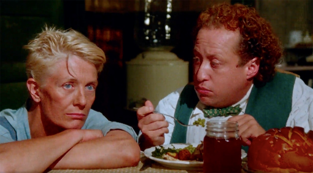 For the casting, Vanessa Redgrave was Callow’s first and only choice for Miss Amelia and she eagerly accepted the challenging role. Actor/playwright Sam Shepard was cast as Marvin but he dropped out shortly before production began and was replaced by Keith Carradine. As for role of Cousin Lymon, that went to Cork Hubbert, a famous stand-up comic from Portland, Oregon who later moved to L.A. and made his film debut in 1978 in the indie drama Property. He subsequently appeared in higher profile supporting roles – the stone age comedy Caveman (1981), Under the Rainbow (1981), a broad farce inspired by the making of The Wizard of Oz, and Ridley Scott’s fantasy adventure Legend (1985) – but this was a major career boost for the diminutive actor. Also, Reverend Willin, a minor character in the novel was expanded into a larger role for Rod Steiger, who delivers the key monologue which is McCullers’s summation of the story’s essence.