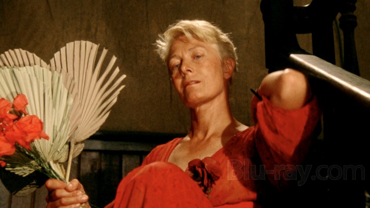 Callow was delighted to be working with an artist of Redgrave’s caliber but she could also be a daunting prospect for any director. In the biography Vanessa: The Life of Vanessa Redgrave by Dan Callahan, Callow said, “I think what happens with Vanessa when she works on a part is that she is groping towards a kind of rationalization of the part, or a concept of the part, and she slowly begins to get it…She said to me one day while we were working that she had been re-reading the novel and suddenly it was staring her in the face that Miss Amelia must be Native American. And I said, ‘Why do you say that, Vanessa?’ and she said, ‘Because she has an herb garden, and she must be in touch with the spirits,’ and so on. And she said that obviously we were going to have to re-shoot everything we had done, because obviously she couldn’t be blond, she would have to die her hair black. And I said to her that we just couldn’t do that because we had no money at all for it.”