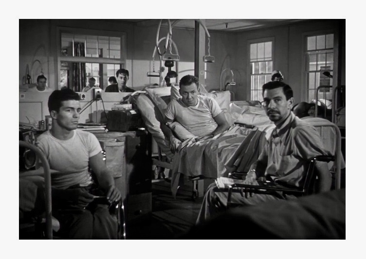 Strangely enough The Men was banned in the U.K. due to a scene in which Dr. Brock (Everett Sloane) speaks frankly with the wives, girlfriends and mothers of the disabled veterans. He addressed the possibility that some of the men might be unable to perform sexually or give their wives children, a topic which was still considered too sensitive for a public forum but needed to discussed openly. The Oscar-winning Best Picture of 1946, The Best Years of Our Lives, wasn’t afraid to touch on some of these serious matters either, but unlike William Wyler’s landmark drama, The Men was not a commercial success.