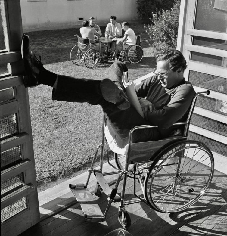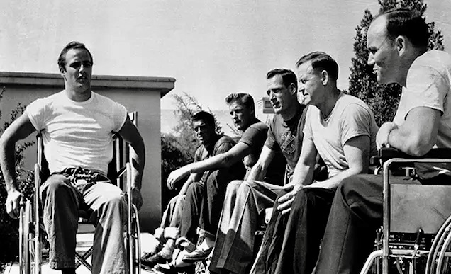 Zinnemann also had the advantage of working with Montgomery Clift on The Search and it marked the director’s first experience of working with an actor trained in what is now known as “method acting.” Since Brando was also a Method actor, Zinnemann was already prepared for how he might approach his role in The Men. The director recalled, “This was the way Brando prepared himself: he spent three weeks – day and night – living with the men on one of the paraplegic wards. He found out not only how they moved and behaved, but how they felt and what they thought. They gradually accepted him as one of their own and he became one of them. He shared their physiotherapy, played water polo with them and went to their drinking sessions at the Pump Room. Soon only a doctor or a nurse could tell that he was not a paraplegic.”
