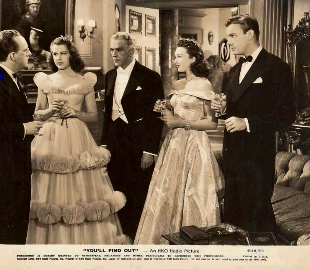 Louise Currie, who plays one of the socialites in You’ll Find Out, recalled working with the horror actors in Karloff and Lugosi by Gregory William Mank: “Boris Karloff, interestingly enough, was very quiet. He didn’t participate on the set too much – he was, I’d almost say, rather a recluse. I distinctly felt you just didn’t run up and start chatting with him! Nor do I remember having too much contact with Peter Lorre, who, as I recall, was a strange little fellow – much the sort he portrayed on the screen! But Bela Lugosi was different. I remember long chats with Lugosi: he was a very educated, polished, interesting man. It was amazing, to me, that he got into the horror end of Hollywood; he could easily have been a serious actor, and have gone in another direction. We had long conversations, which continued on the other films I did with him, The Ape Man [1943] and Voodoo Man [1944].”