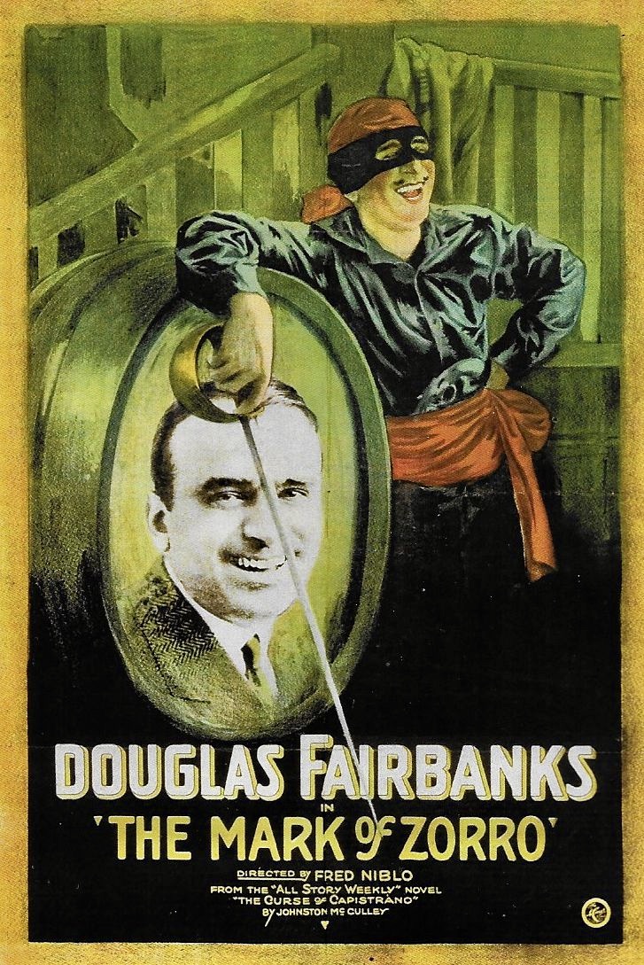 It is a well known fact that Douglas Fairbanks was one of the first superstars of the silent era but he first became famous as a leading man in romantic comedies such as Wild and Woolly (1917) and Reaching for the Moon (1917). In the aftermath of World War I, audiences had grown bored with the cheerful, boy-meets-girl formula that had made Fairbanks a popular screen idol so the star decided to try a different tactic. A short story by Johnston McCulley, “The Curse of Capistrano,” had appeared in the pulp magazine, All-Story Weekly, and he decided to read it during a long train trip from New York to Los Angeles. This was unusual in itself since Fairbanks did not like to read (and that included his movie scripts) but actress Mary Pickford encouraged him to read the serial and McCulley’s story became his next project. It was first called The Curse of Capistrano, which was then changed to The Black Fox and finally released as The Mark of Zorro in 1920.