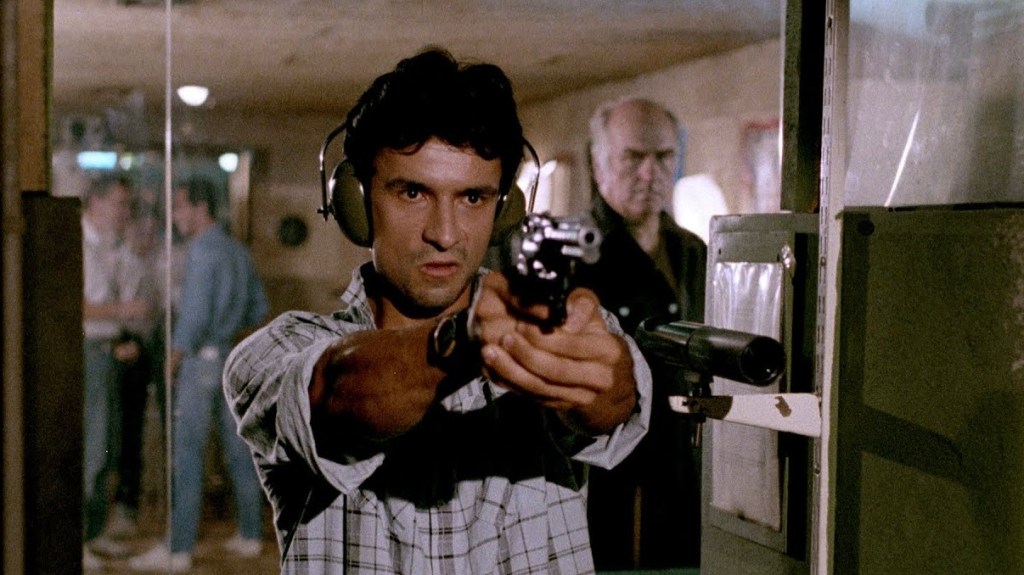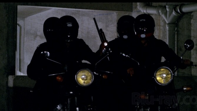 In his film debut, Thierry de Carbonnieres plays Gerard Lattuada, a respected undercover officer who is placed on hiatus by his commanding officer (Christian Barbier) instead of assigning him to a case in which he has a personal stake in the matter. Gerard has no intention of standing on the sidelines, however, and secretly goes after a four man assassination squad, who have been terrorizing the city. Dressed in black, armed with shotguns and riding motorcycles, the death squad is first introduced murdering several transvestite hookers in a city park. [The sequence at the morgue where the victims’ naked bodies (and male genitals) are exposed for an autopsy would be a jarring introduction for any film!].