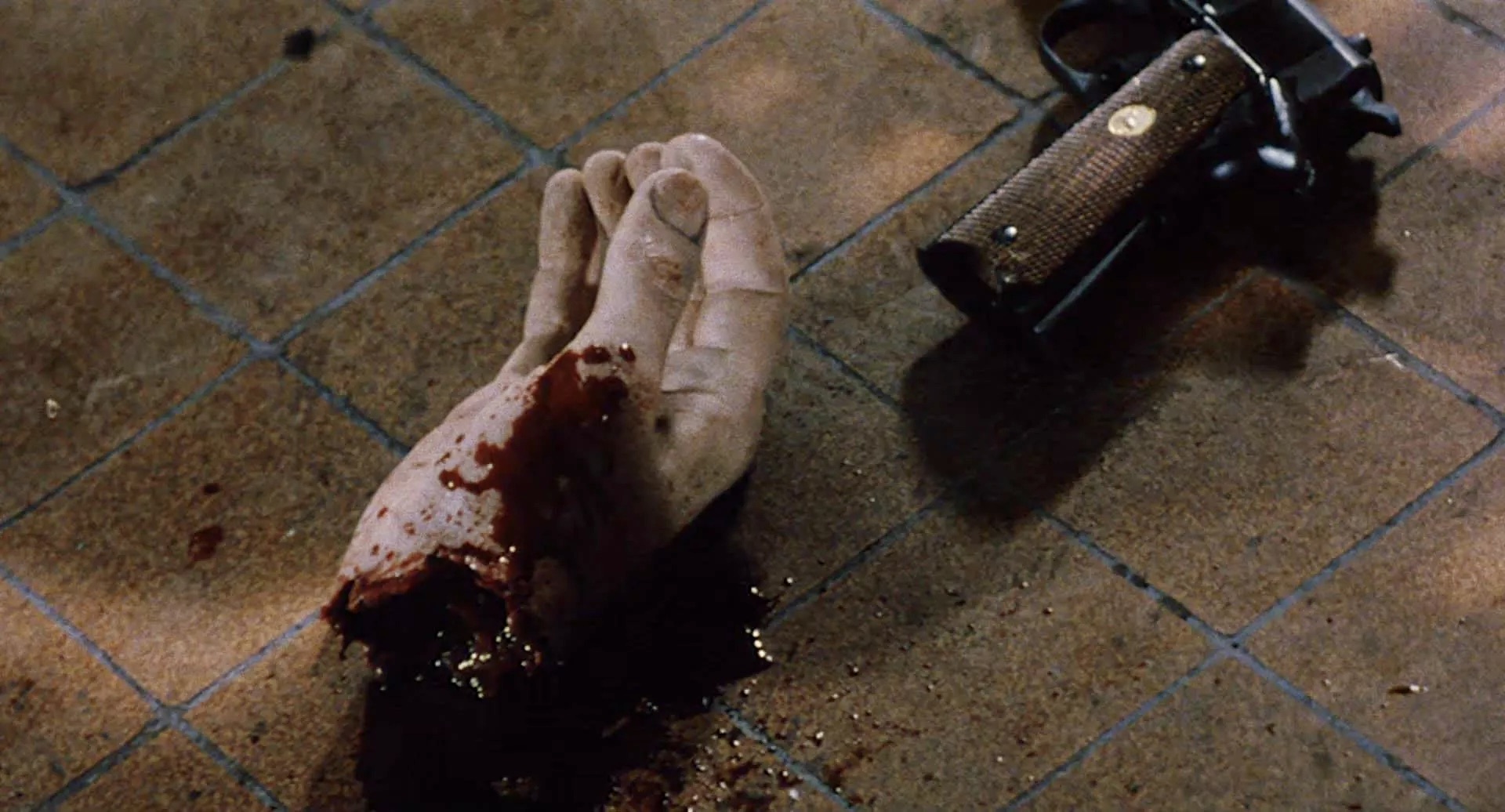 [Spoiler alert] Although there is plenty of brutality throughout Death Squad – the bar massacre, the shotgun murder of Gerard’s sister Solange (Olivia Dutron), the fiery death of Costa’s partner Fat Louis (Phify) – the climax is a symphony of carnage. Set in an empty warehouse, The Greek and two of his men try to apprehend and kill Costa, who is more cunning and better armed with a variety of weapons. He quickly dispatches Marcel (Henri Lambert) with an icepick in the eye while Luigi (Guy Di Rigo) gets his hand amputated and a hatchet in the head. Then Gerard arrives on the scene to rescue Sylvie and kills The Greek with a machine-gun but saves a most appropriate revenge for Costa – a hand grenade to the groin…too bad we don’t get to see him explode!