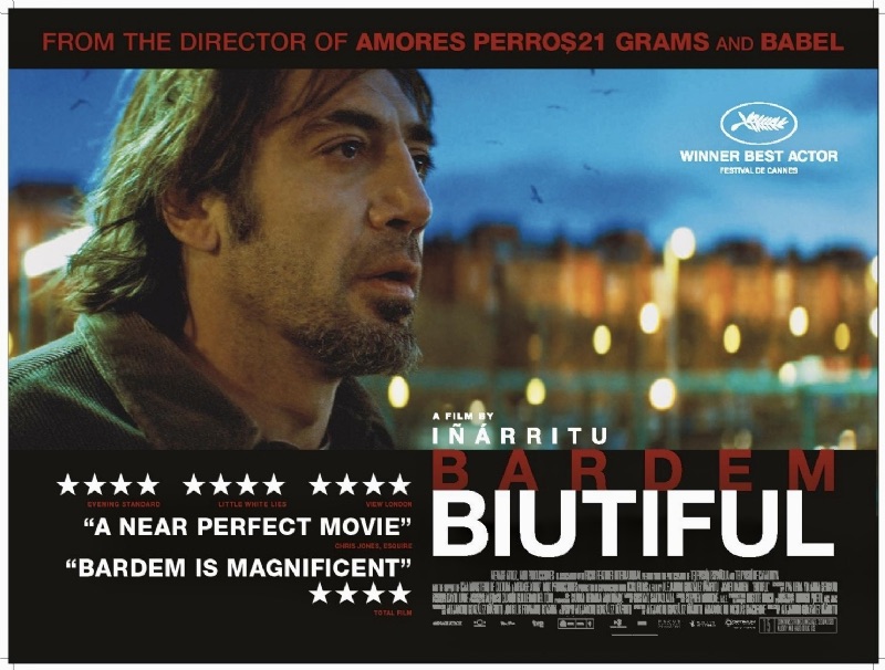 One thing that sets Biutiful apart from Inarritu’s previous films is a narrative structure that abandons the multiple storyline fragmentation as in Amores Perros or 21 Grams and concentrates instead on one character, Uxbal (Javier Bardem), and the day-to-day details of his manic existence. Uxbal supports himself and his two children through a variety of odd jobs, all of them involving illegal activities and, in most cases, the trafficking of Chinese and African immigrants.