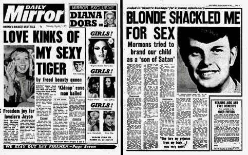 Without spoiling the fun of discovery, I’ll just say that the movie dissects a famous tabloid story in the British press involving Joyce McKinney, a former Miss Wyoming, and her plot to abduct and hold captive in a Devon cottage her Mormon boyfriend who had abandoned her for his church. A mixture of talking heads, archival footage, animated graphics and news clippings, the movie veers off in several peculiar but fascinating directions that are nonetheless relevant to the story and involve the sex industry, cloning, and Joyce’s numerous false identities and disguises.