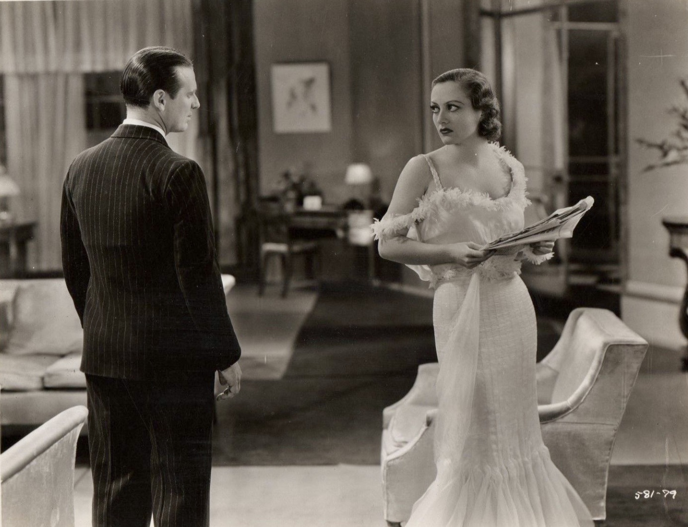 But their magnetic appeal as a screen couple first became apparent in Possessed with its potent blend of politics and sex. Not that the film was perfect – an unrealistic happy ending and Crawford’s rendition of “How Long Can It Last” delivered in three languages were low points – but Possessed, as stated in Bob Thomas’s biography Joan Crawford, “proved to be an important film in the progress of Joan’s professional life. It ended forever her period in movies as an empty-headed hedonist with a passion for dance. Now she moved to portrayals of girls on the rise from the lower classes, an apt metaphor with Americans submerged in the Depression.”