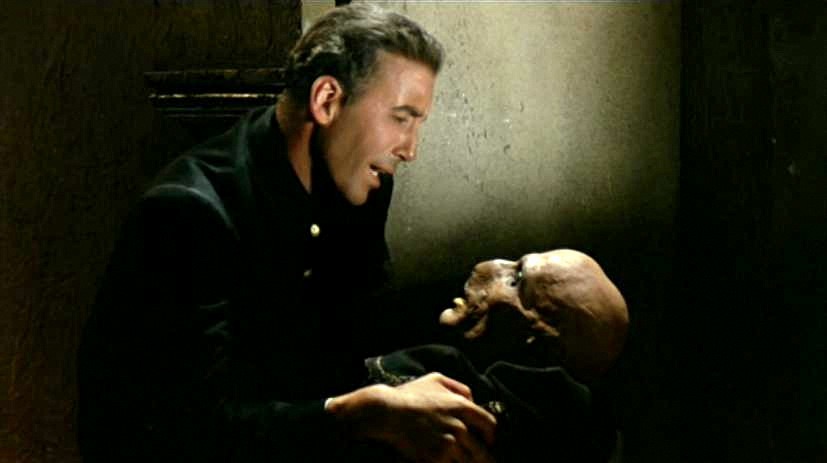 [SPOILER ALERT] The subplot of Horror Castle is much more unconventional than the main damsel-in-distress scenario and focuses on the relationship between the disfigured Erich (Christopher Lee) and “The Punisher,” who haunts the mansion’s corridors and turns out to be Max’s father. During World War II, Erich had served under Herr Hunter but when his commander was accused of plotting to assassinate Hitler, his superior officers subjected him to a cruel surgical procedure that transformed him into “a living skull.” Since that time, Herr Hunter has been living in seclusion in the depths of the castle but the arrival of his son (Georges Riviere) and daughter-in-law serves as a trigger for his unstable mind. The acts of violence perpetuated against women by “The Punisher” is contrasted against a more sympathetic treatment of him as a victim of the Nazis. As a result, the film straddles a fine line between misogyny and a metaphorical representation of the horrors of war.