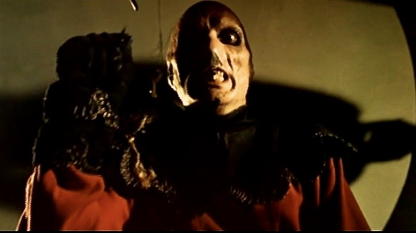 Equally repulsive and hard to forget is the unmasking of “The Punisher” which in its own way is just as disturbing as the moment when Lon Chaney’s skeletal features are revealed in the original 1925 version of The Phantom of the Opera. Is this a case of great special effects makeup or questionable central casting with an unfortunately disfigured actor fitting the part? It is actually character actor Mirko Valentin (The Castle of the Living Dead, The Hills Run Red) under that unsettling make-up as “The Punisher.”