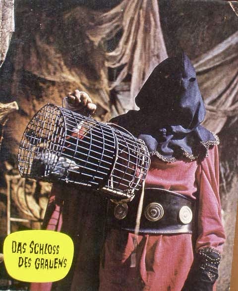 On the surface, Horror Castle is an old-fashioned throwback to the days of Rebecca (1940) and The Woman in White (1948) but what sets it apart from those films is a penchant for occasional bursts of violence and sadistic horror. One sequence still retains its power to shock today; a woman captured by “The Punisher” has a cage placed over her head containing a starved rat – and it ravenously attacks her face.
