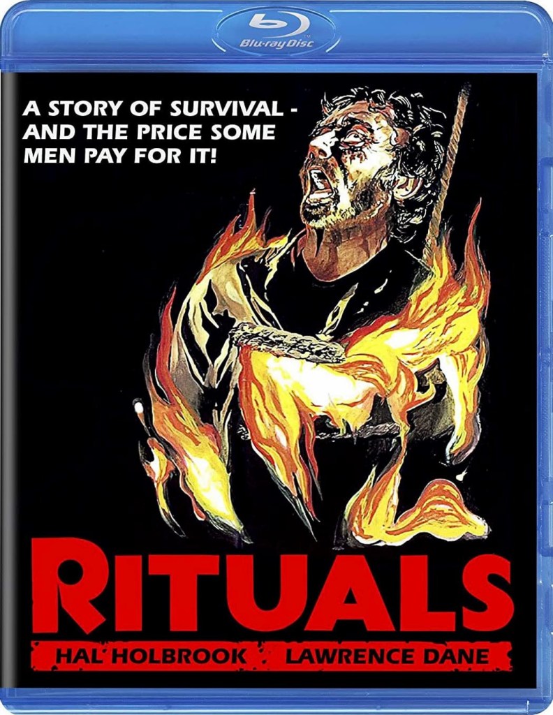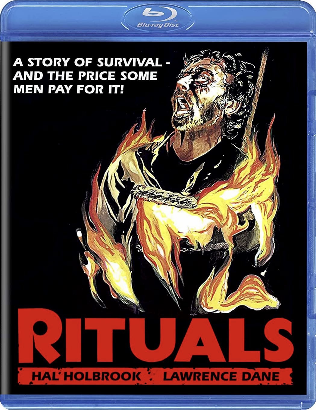 Despite a modest budget, Rituals is a cut above the typical exploitation thriller and anchored by solid performances from Hal Holbrook in a vigorous physical role (he performs some of his own stunts) and a small group of seasoned Canadian actors including Lawrence Dane (who also produced the film). The remote wilderness setting in Ontario, Canada with its forbidding green woodlands and desolate rocky hillsides (the site of a recent forest fire) also add a sense of complete isolation from the rest of the world.
