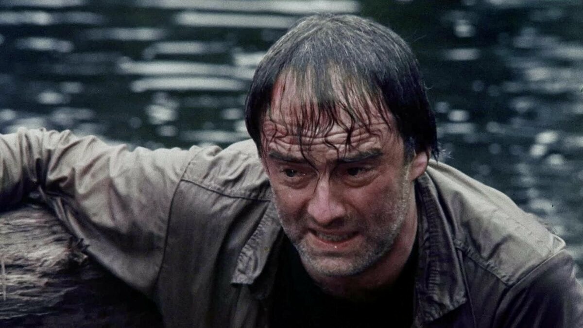 Their annual outdoor trip turns into a real horror show when they attempt to cross the river and discover too late that the river bottom is lined with bear traps. Martin steps in one and subsequently breaks his leg, leaving Mitzi and Harry with the sole option of carrying the injured man out of the wilderness on a makeshift stretcher. This proves too difficult to manage so they create an inflatable gurney for Martin in order to float him down the river.