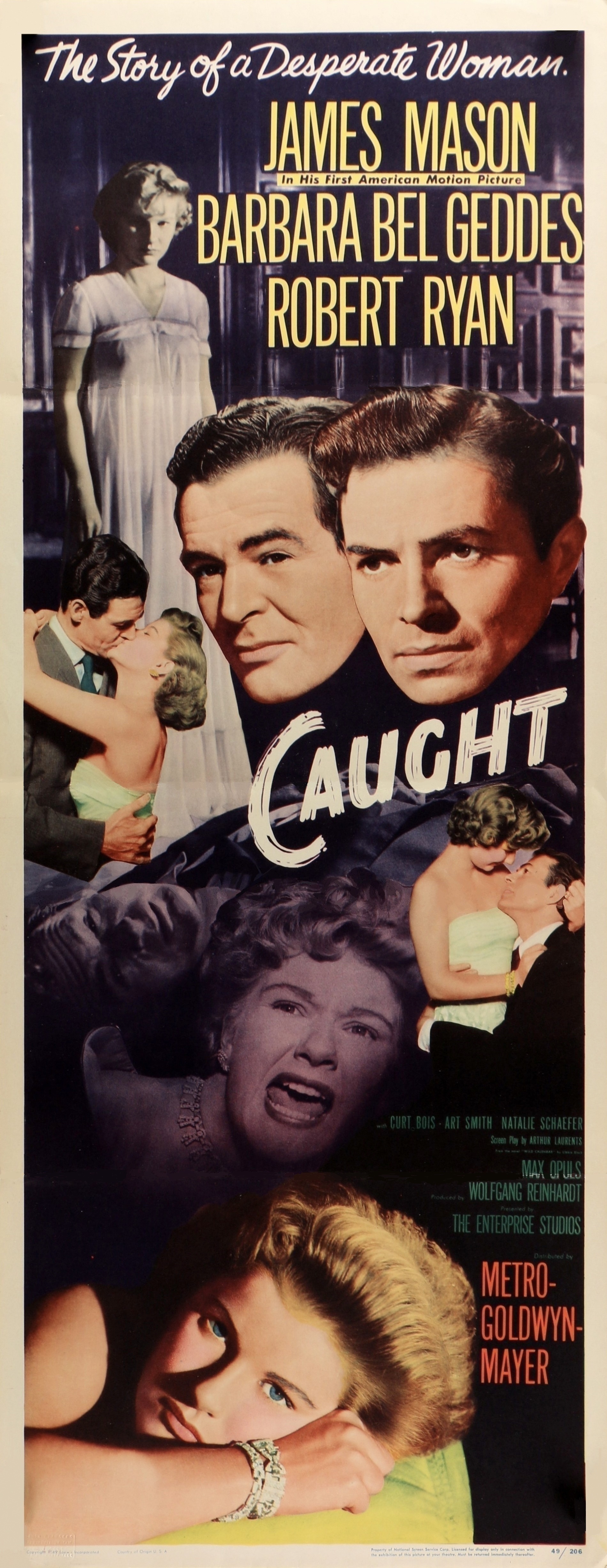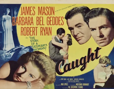 David Thomson in his film reference work, “Have You Seen…?”, wrote, “Caught is a treat. Somehow all the mixed motives have conspired to make a love story noir in which the rawness of the material makes a rich contrast with the sophistication and warmth in Ophuls’s way of looking at people.” And Charles Taylor in his review for Salon stated, “It’s a coruscating portrait of American fantasies and the confines of class. Visually (the movie was shot by Lee Garmes) Caught is a succession of private traps. The sets are either cramped and dingy, like Leonora’s apartment and the doctor’s offices where she works, or, like Ohlrig’s mansion, so cavernous they seem unable to sustain human life. Still, the movie chooses the fetid air of the tenements where Leonora and her doctor work, over the stultified air of Ohlrig’s mansion. For Ophuls it’s an easy, unsentimental choice. He escaped the clutches of a crazy millionaire, too. He appears to have caught a whiff of genuine madness during his time with Hughes. This bitter little movie was Ophuls’ way of making sure he never forgot it.”