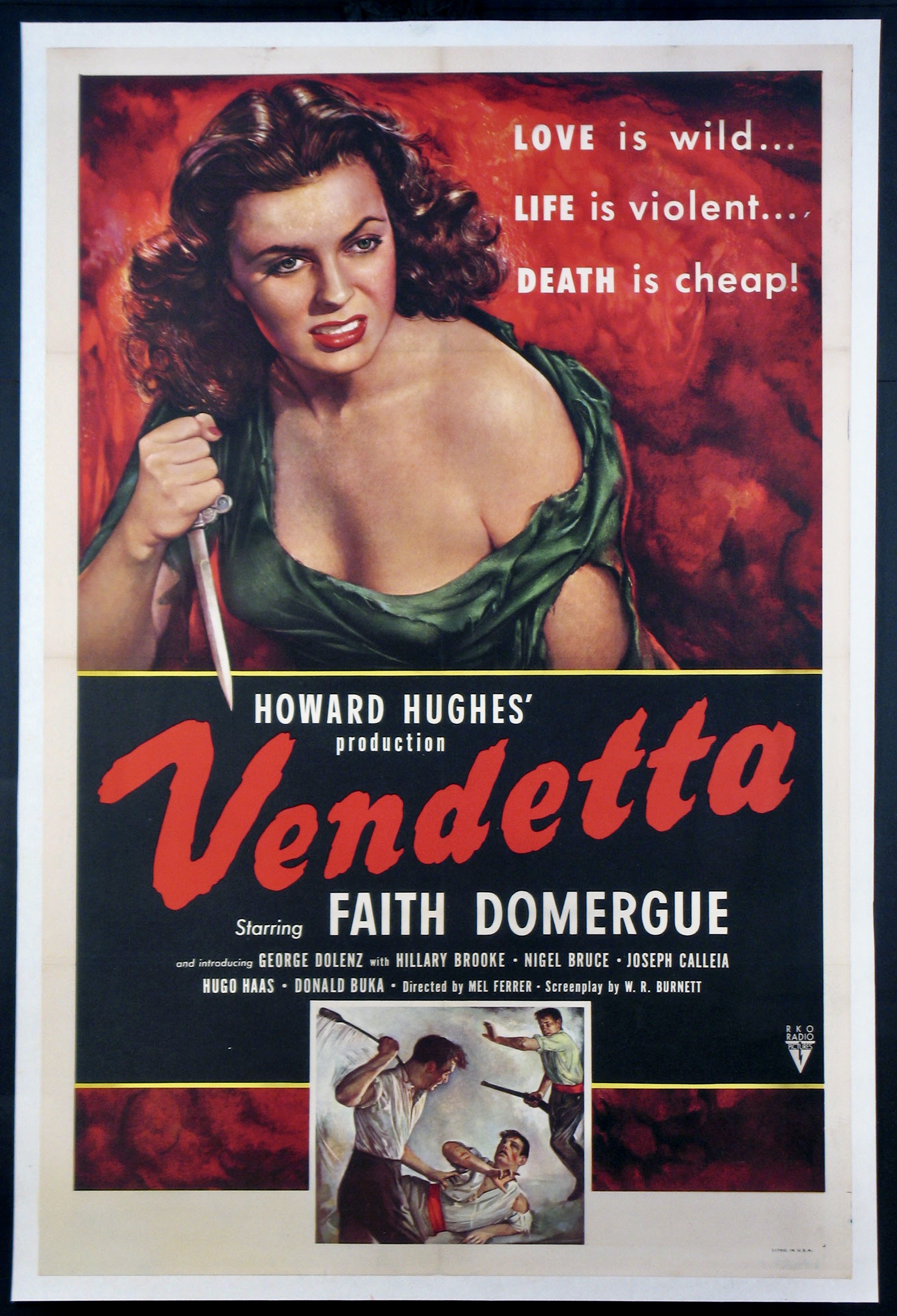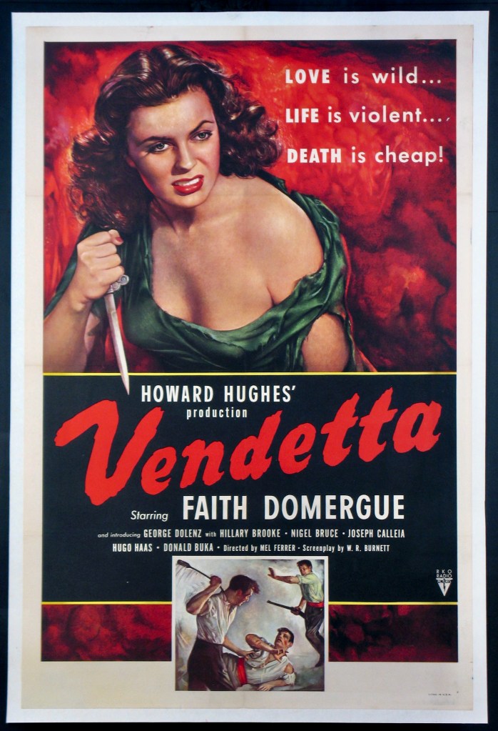 Ophuls was originally hired to direct Vendetta, a florid melodrama starring Faith Domergue, Hughes’s newest protégé. The director worked on Vendetta for eleven weeks – it was supposed to be his American film debut – before being fired by Hughes for his slow shooting process and his direction of the fledging actress (it was only her third film and she had the starring role). Hughes also disliked working with “foreigners” and he referred to Ophuls as “the oaf.” The film went through other uncredited directors such as Stuart Heisler and Preston Sturges before Mel Ferrer was brought in to complete the picture. As a result, Vendetta wasn’t released until 1950 but Ophuls’ experience of working with Hughes was such a nightmare for him that the Smith Ohlrig character in Caught became an avatar for the infamous mogul.