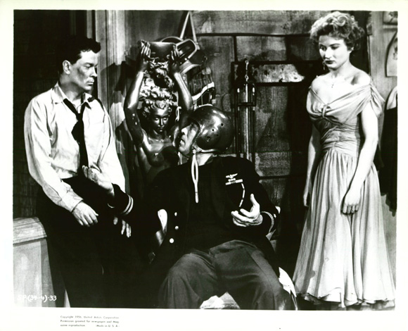 Where The Wild Party goes off the rails is in Anthony Quinn’s overblown performance as the volatile gang leader and Jay Robinson’s knife-welding sadist who is so unintentionally funny as Big Tom’s sidekick that whenever they’re on the screen, the movie works better as a parody of the bohemian beat scene than the intense melodrama which it clearly aspires to be. Almost as funny is Kathryn Grant’s somnambulant bohemian who takes an unexpected turn in the final scene, much to Big Tom’s detriment. In one of the most overwrought scenes with a hysterical Erica trying to break out of a locked room in an abandoned warehouse, Grant’s character impassively tells her, “I can’t help you. There’s no way out. Just go inside yourself. Close off the world.”