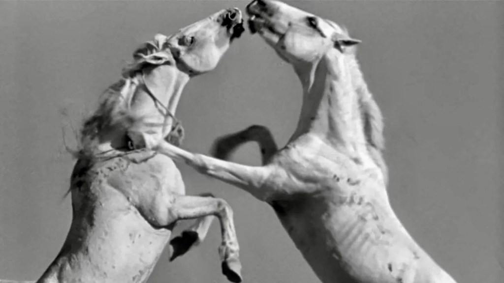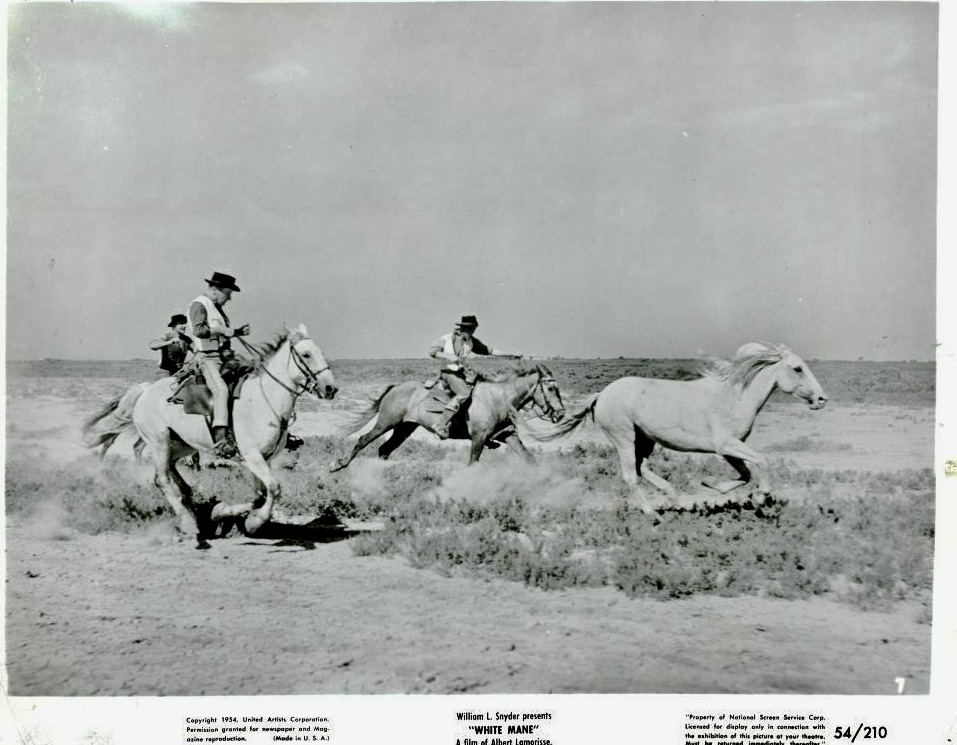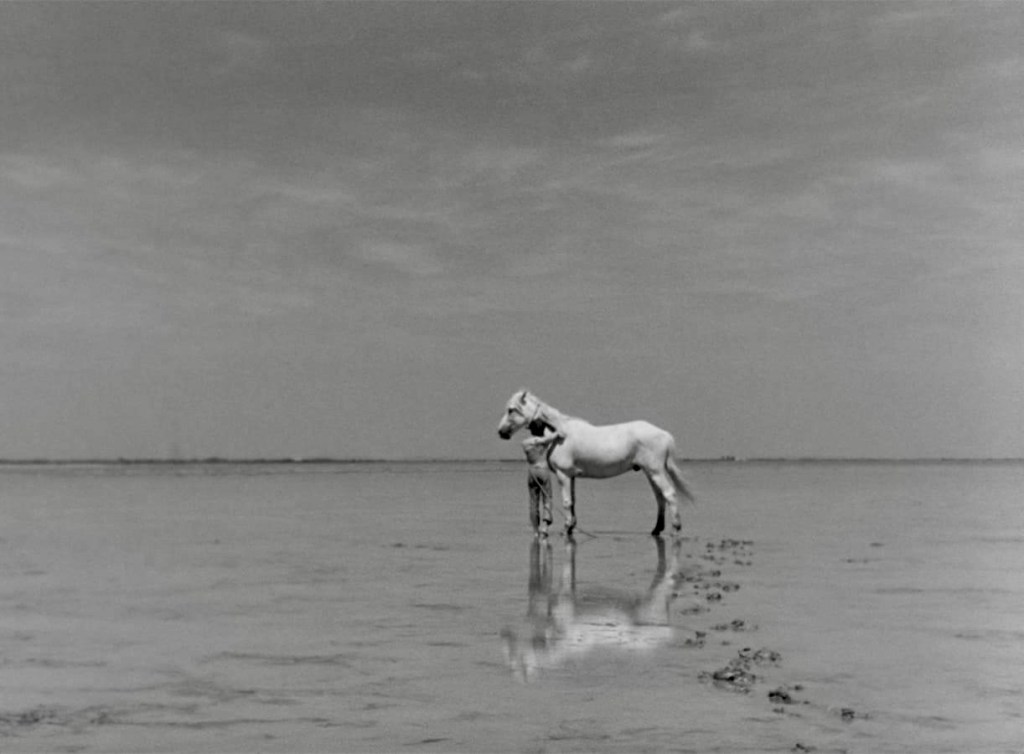An offscreen narrator informs us at the start of White Mane: “In the south of France where the Rhone spills into the sea, there is an arid land called the Camargue.” This vast wetlands area is famous for its more than 400 species of birds but also for the wild Camargue horses which roam the marshes and sand dunes. It is here that the story of White Mane unfolds as he and his untamed companions roam free while avoiding capture by gardians (local herdsmen).