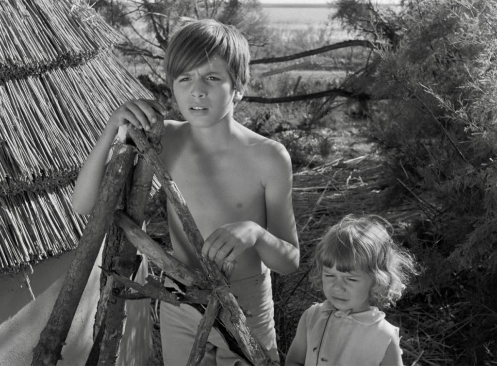 One of the most impressive aspects of White Mane is the film’s pictorial beauty (the stunning black and white cinematography is by Edmond Sechan [That Man from Rio, 1964]) and the action sequences involving the horses. Alain Emery didn’t know how to ride a horse before filming began but you would never know it from watching him ride White Mane bareback in the second half of the film. Although a stunt double was used for Emery in some of the long shots of Folco being dragged across the marshes and mud plains by the horse, the young actor is clearly present in the astonishing scene where he and White Mane are trapped in the middle of a burning marsh and manage to escape. The sequence where White Mane battles another stallion for dominance of his herd is also intense and brutal as the two horses savagely bite each other, drawing blood.