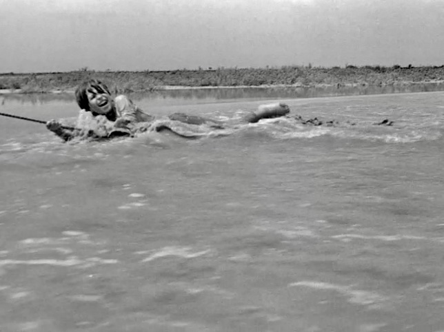 When Folco mounts White Mane at the finale, the duo try to escape the pursuing cowboys by plunging into the river and are swept out to sea. The narrator informs us: “…the young fisherman didn’t listen to the wrangler and his herdsmen who had lied to him before. He and White Mane vanished in the waves before their eyes. They swam straight ahead, straight ahead. And White Mane with his great strength carried his friend who trusted him to a wonderful place where men and horses live as friends, always.” As we see Folco and White Mane swimming into the distance, the viewer can either believe that the two reached a magical land or perished together in the sea – free at last.