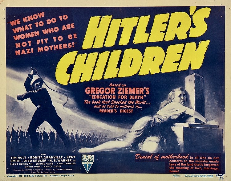 As for Bonita Granville, she always cited Hitler’s Children as her favorite film. Even though she went on to make more upscale movies like Love Laughs at Andy Hardy (1947) and The Lone Ranger (1956), she liked Hitler’s Children because it was one of the rare times she got top billing and got to play an adult character.