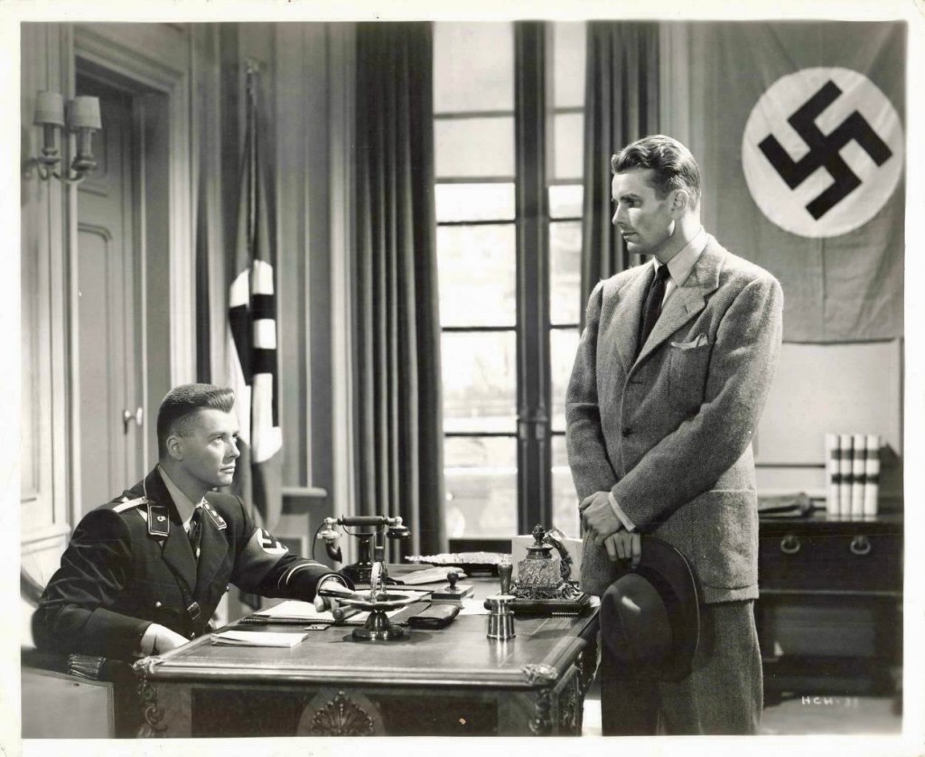 Dmytryk actually ended up on the film by accident. In his autobiography, It’s a Hell of a Life But Not a Bad Living, he wrote “A friend of mine, Irving Reis, had prepared and actually started shooting a film called Hitler’s Children, an exploitation B. Irving was rather headstrong and somewhat touchy – a bad combination in Hollywood. After a few days, he got into a fight with producer Doc Golden. Getting his back up, he quit the film, expecting, so he told me later, to win a quick apology and a free hand. Instead, the studio said, “As you wish,” and asked me to take over the direction. He gave me his blessing, asking only that his name be completely removed from the film’s credits. The studio was willing and I went to work. I finished on schedule, cut and dubbed it, and turned it over to the distribution department. None of us at the studio was sure of what we had.”