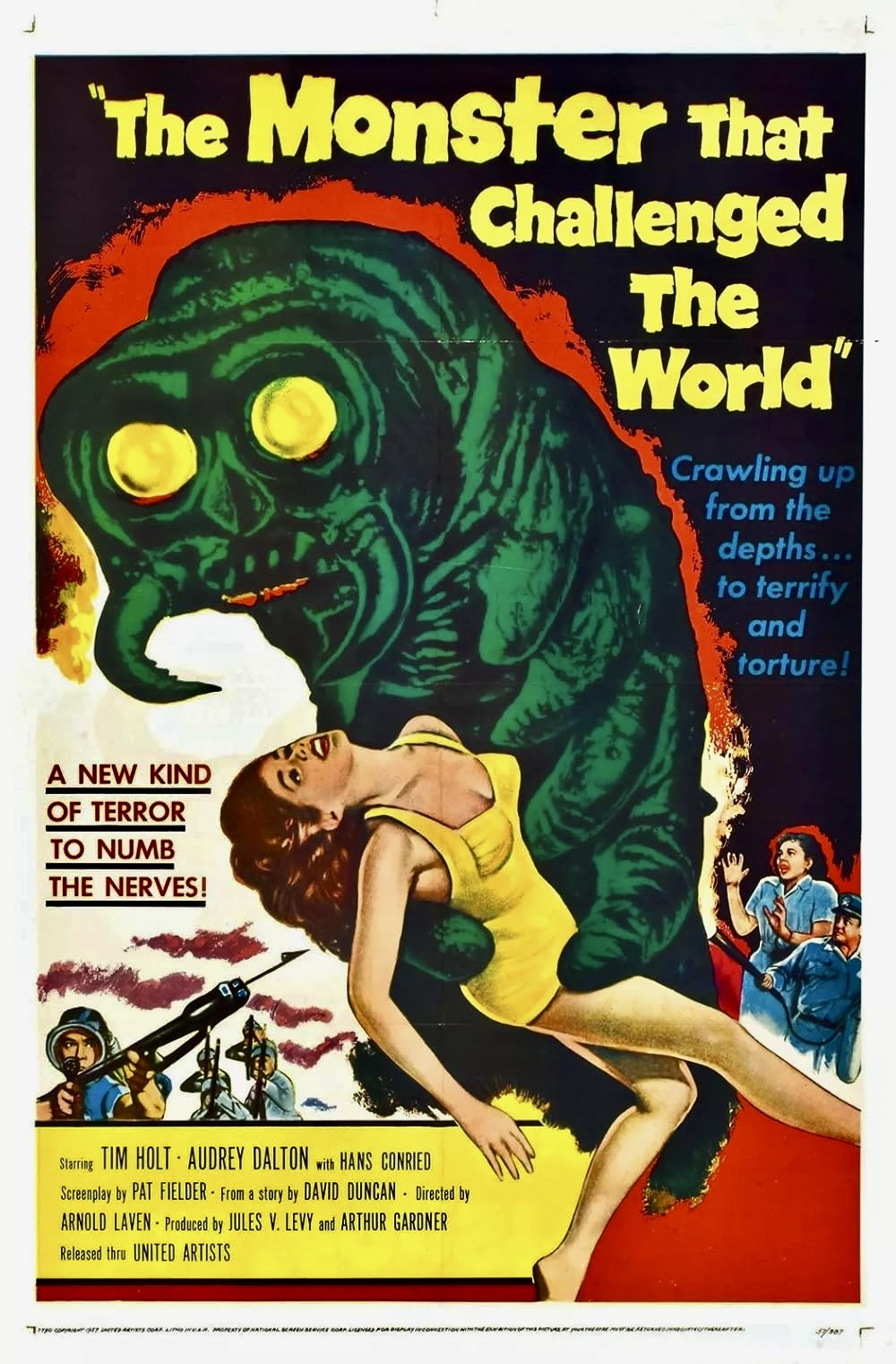 Tim Holt was already gravitating toward a steady career in westerns by the time he made Hitler’s Children with John Ford’s Stagecoach (1939) on his resume but also numerous B oaters for RKO in which he had the leading role such as Wagon Train (1940) and Cyclone on Horseback (1941). He actually had the opportunity to transition into starring roles in A pictures in the early to mid-forties, thanks to impressive performances in The Magnificent Ambersons (1942), My Darling Clementine (1946) and The Treasure of the Sierra Madre (1948). Instead, Holt preferred to stick with low budget westerns because he loved working outdoors with horses and didn’t enjoy the stress of appearing in big budget productions. In a career where he made close to 78 films more than fifty of them were westerns with a few rare exceptions like the 1951 noir His Kind of Woman and the sci-fi thriller, The Monster That Challenged the World (1957).