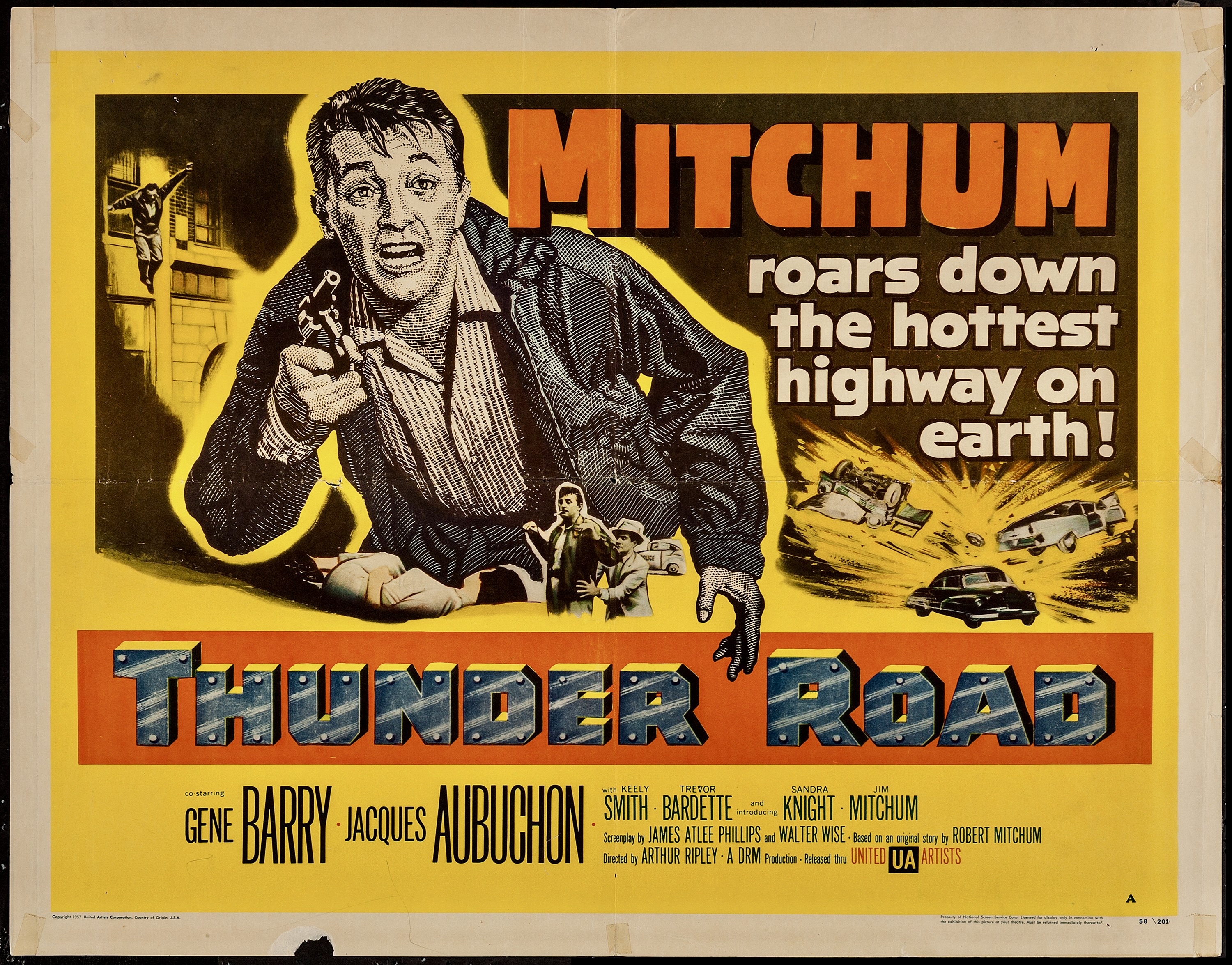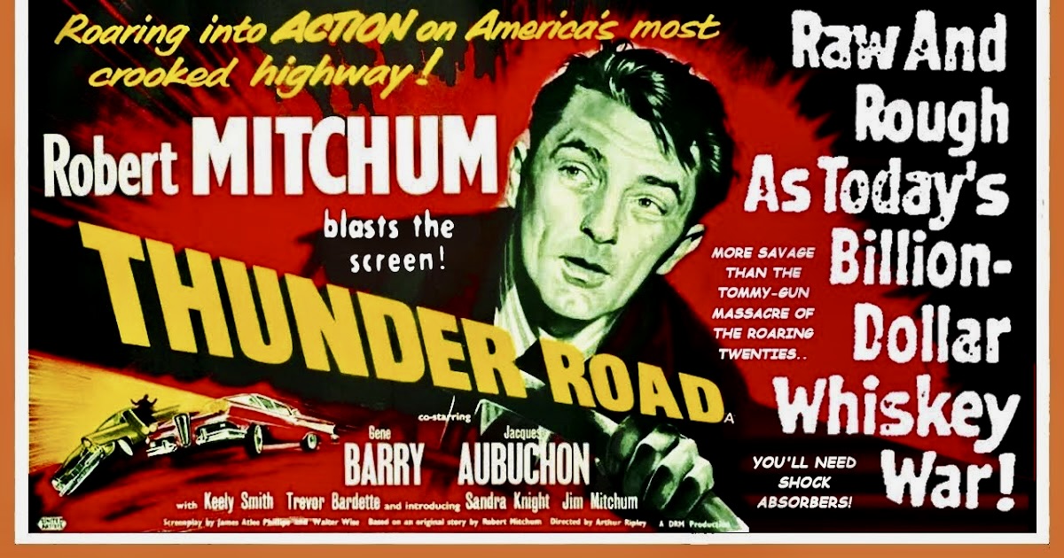 Thunder Road was mostly ignored by the mainstream critics of its day although the Variety reviewer did admit it “had plenty of fast auto action” but also complained it was, “Burdened with an overage of dialog and an abundance of uneventful footage.” But the intended audience for the film could care less about film critics and Thunder Road went on to become a legendary cult favorite, often referred to as “the Gone with the Wind of drive-in movies.” In more recent years, The Chicago Reader called it “the definitive road movie, the well from which all the genre’s subsequent blessings flow” and Geoff Andrew of TimeOut wrote, “Cheaply made, disreputable, and blatantly anti-authority, it’s a winner all the way, what with a stunningly laconic performance from Mitchum, white-hot night-time road scenes, and an affectionate but unsentimental vision of backwoods America rarely seen in cinema to this day.”