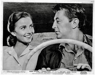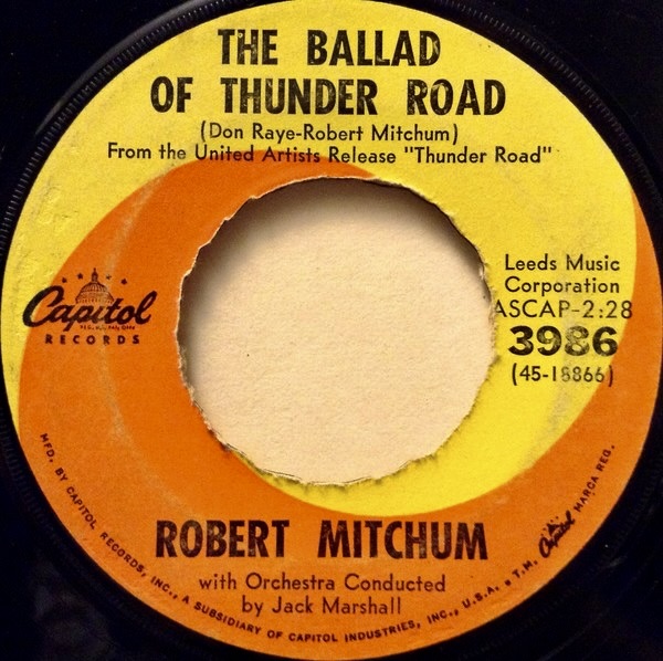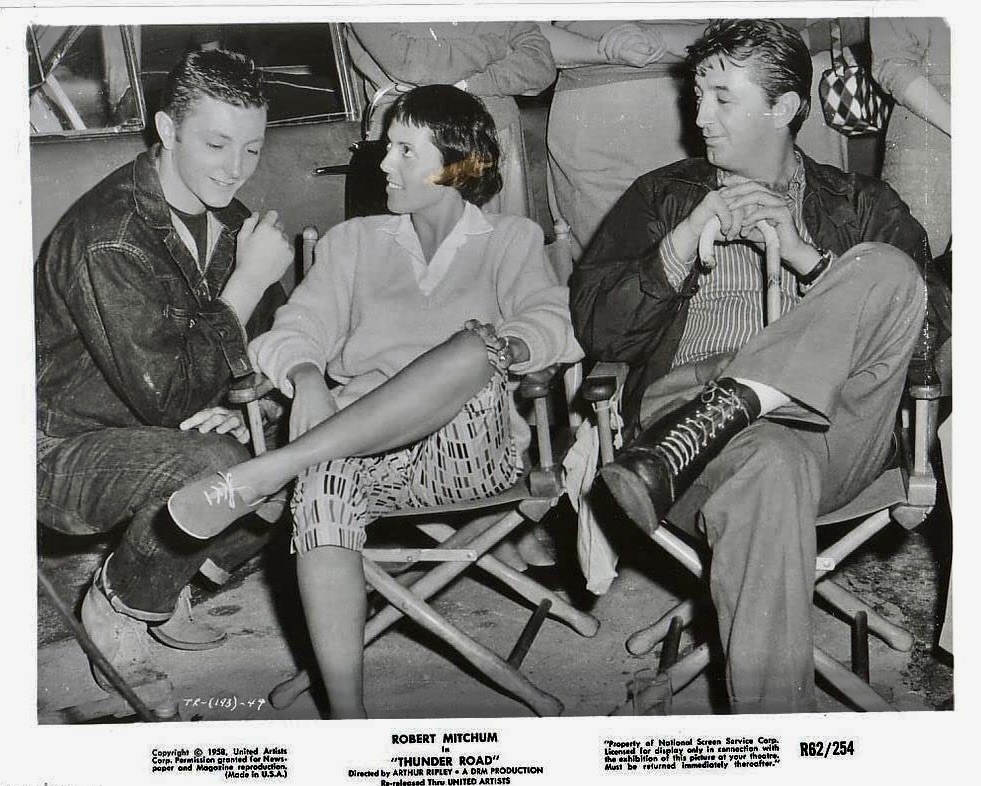 Thunder Road was a personal project for Mitchum and he loved every minute of it from schmoozing with officials at the U.S. Treasury Department in the Alcohol and Tobacco Tax Division to filming on-location in Asheville, North Carolina. In addition, he tried to persuade Elvis Presley to take the role of his brother (eventually played by his own son) but the King’s asking price, arranged through his manager, Colonel Parker, was more than the budget of the entire film.