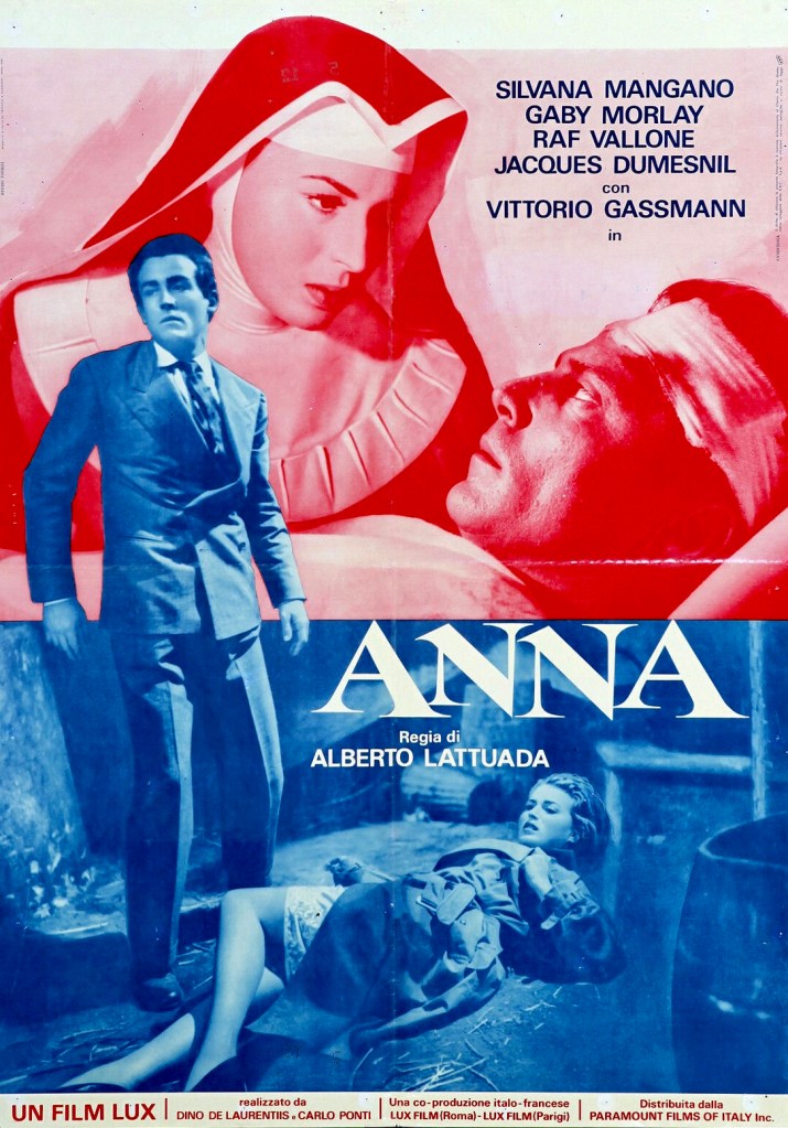 Anna is not currently available on any format in the U.S. and is unlikely to become a future release for the Criterion Collection or other prestige distributors of international cinema on Blu-ray due to the film’s lack of critical acclaim or artistic merit. But it is certainly a cultural milestone of some kind and historically important for its main players but also Lattuada’s film crew which includes music composer Nino Rota and cinematographer Otello Martelli, who filmed landmark movies for Roberto Rossellini [Paisan (1946), Stromboli (1950)] and Federico Fellini [I Vitelloni (1953), La Strada (1954), La Dolce Vita (1960)]. For those who are interested, a subpar but viewable copy of Anna (without English subtitles) can be streamed on Youtube.