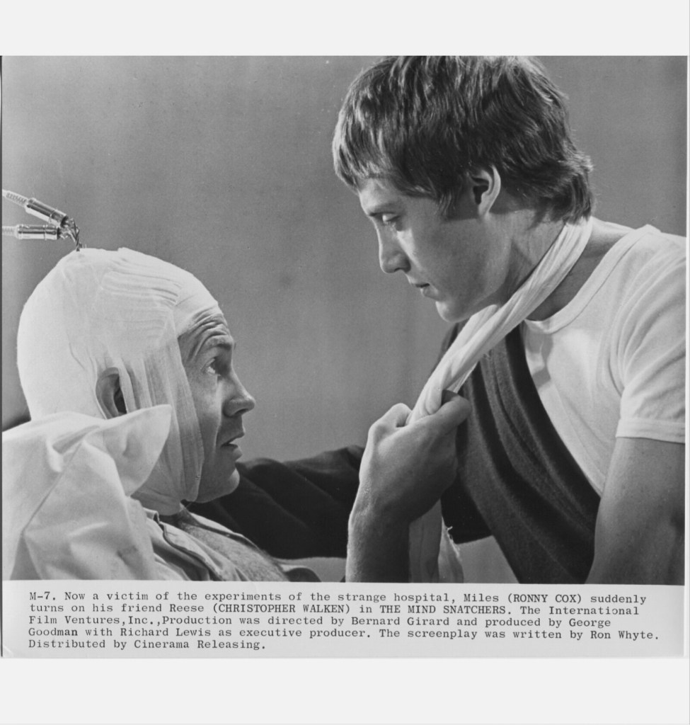 Bernard Girard, the director of The Mind Snatchers, is best known for his work in television, mostly helming episodes of Medic, Climax!, M Squad, and The Alfred Hitchcock Hour. His feature directorial debut was the 1957 western Ride Out for Revenge (1957) and he also turned out B-movie melodramas like The Green-Eyed Blonde (1957) and The Party Crashers (1958). Dead Heat on a Merry-Go-Round (1966), an intriguing caper comedy-drama headlined by James Coburn, is generally regarded as his best film but The Mind Snatchers is certainly fascinating as a showcase for Walken and Cox and as an offbeat indie film of the 70s.