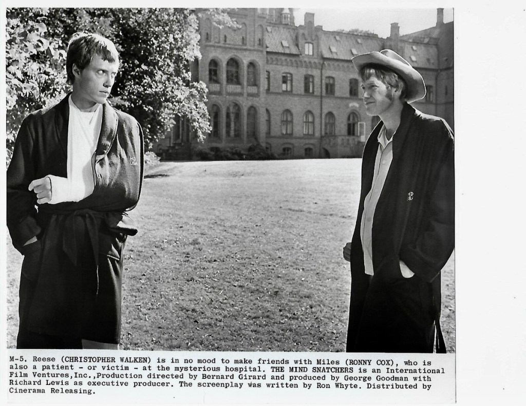 The Mind Snatchers was mostly overlooked by critics during its initial release but Howard Thompson of The New York Times criticized the film for remaining too close to its stage origins. Still, he admitted, “The scenarist, Ron Whyte, and the director, Bernard Girard, have not betrayed the playwright. The pros and cons of the experiment are grippingly argued by Christopher Walken, as the brightest of the patients; Joss Ackland, as a conscience-bent surgeon and Ralph Meeker, as an ice-cold major (in the play, a general). The story and that plot resolution simply don’t hold up, as X-rayed by the camera. What does sustain is the freezing horror of the hospital atmosphere, conveyed by the dialogue and two piercing, brilliant performances. We weren’t sold on the plastic shrewdness of the young hero, voiced by Mr. Walken. But Ronny Cox as a stricken Texan and Bette Henritze as a very surprised hospital aide—both from the original play—are wonderfully effective.”