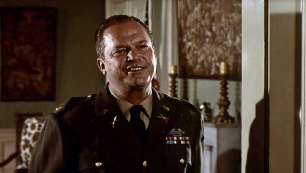 Dr. Frederick (Joss Ackland), a scientist conducting experiments on the human brain, and the Major (Ralph Meeker), the army official who funds the research, listen to recorded interviews with Reese and a psychiatrist. They conclude that his behavioral problems and anti-social tendencies might be cured or controlled through brain surgery instead of electric shock treatments. Reese has no idea that he is being prepped as a guinea pig for Dr. Frederick’s experiments and naively signs consent forms allowing the army to commit him to a heavily guarded, top secret facility.