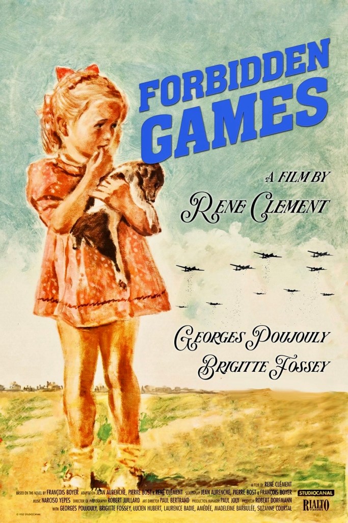 June 1940. A long line of French refugees flee Paris for the countryside during the German invasion of France in WW2. Among the evacuees are a young couple with their 5-year-old daughter Pauline and her pet dog Jock. When the couple’s car stalls on the road, angry refugees push it out of the way and down a hill. The family grab whatever they can carry from their stranded vehicle and return to the road as German aircraft start dropping bombs. In the confusion, Jock runs off and Pauline chases after him. Her parents follow in pursuit but the family is forced to take shelter again as aerial machine-gunners target the escaping Parisians. This time the parents and the dog are mortally wounded and Pauline is left abandoned. She wanders into the countryside clutching her dead pet, not really comprehending what has happened to her. All of this occurs in the few ten minutes of Jeux Interdits (English title: Forbidden Games), one of the most powerful war films of all time. Yet, it is unique within its specific genre because it does not focus on the war itself but the effects of the devastation on a young child. Directed by Rene Clement, the film became an international sensation and won a honorary Oscar as Best Foreign Film of 1952.
