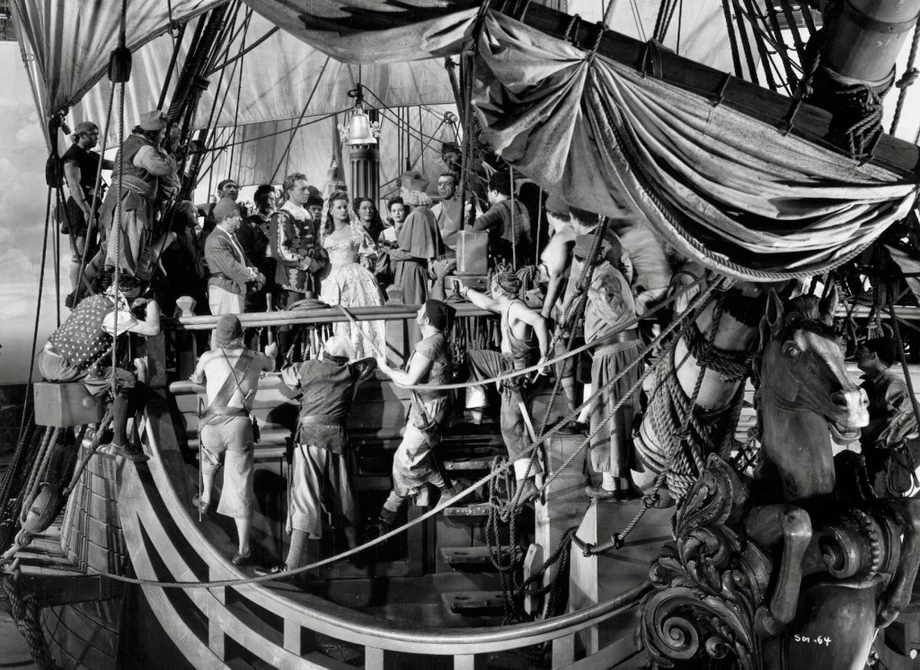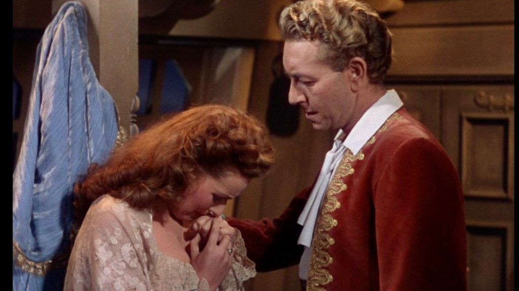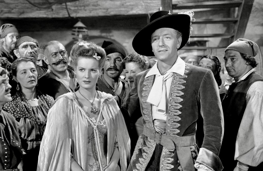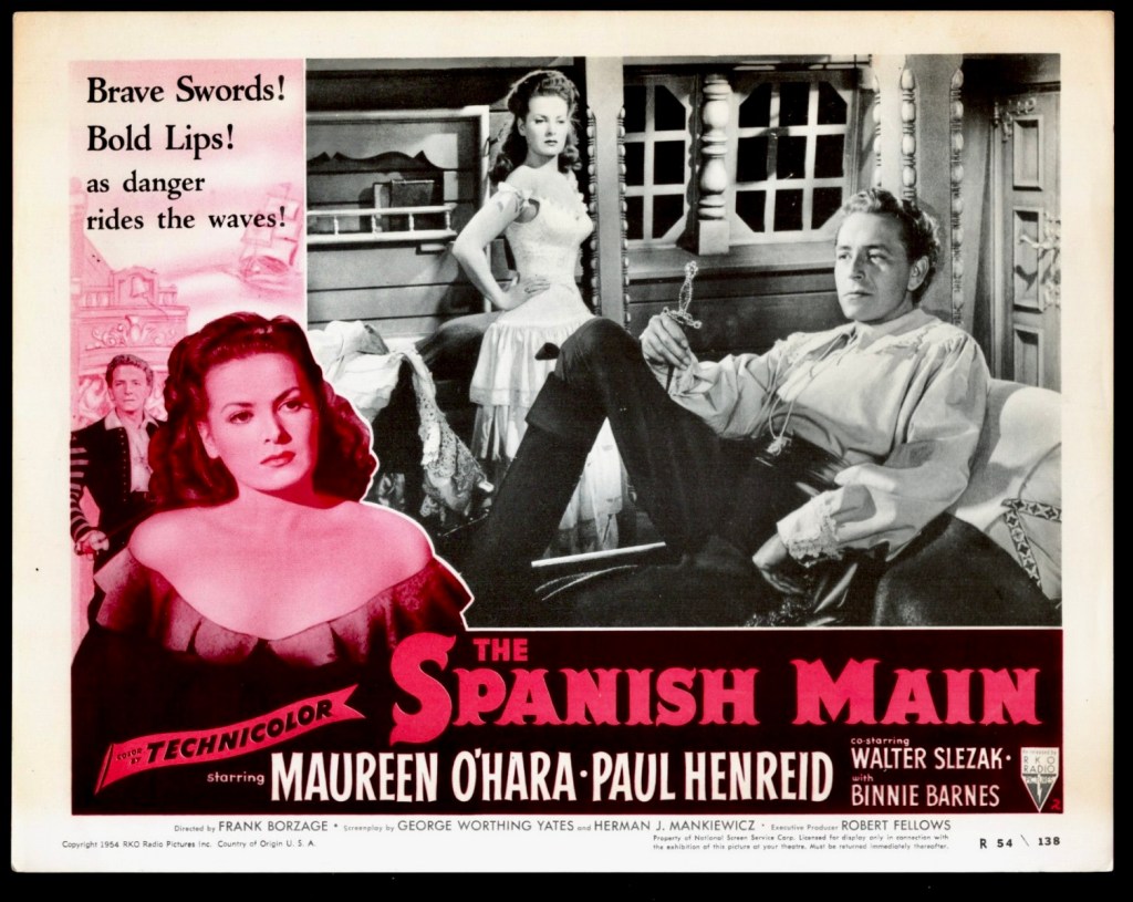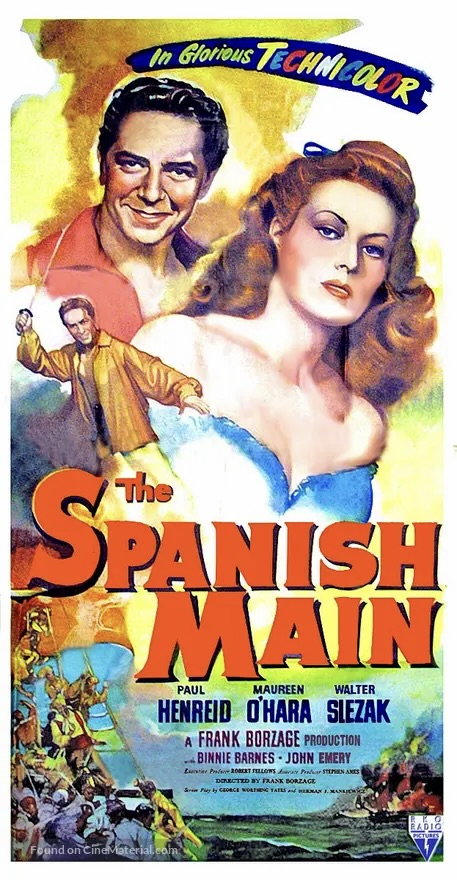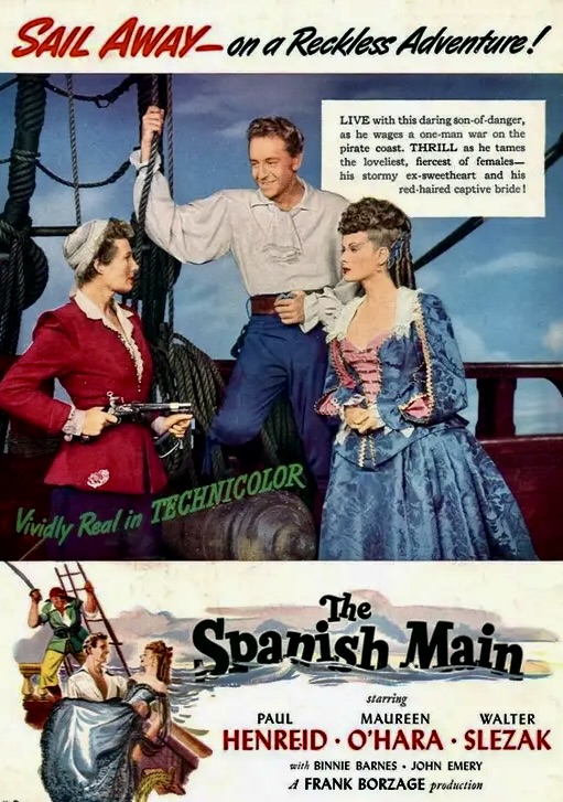 For Maureen O’Hara, The Spanish Main was, according to her autobiography, “good swashbuckler fare, pairing me with Paul Henreid, the Austrian actor best known for his role as Victor Laszlo in Casablanca [1942]. Some in Hollywood called him “Crackerbutt Hemorrhoid” because he had no behind at all. Truthfully, he was too charming and not tough enough for the role in our film. Frank Borzage directed the picture and it was shot in Technicolor by cinematographer George Barnes. With a camera, George could make you look like milk and honey, sugar and cream.”