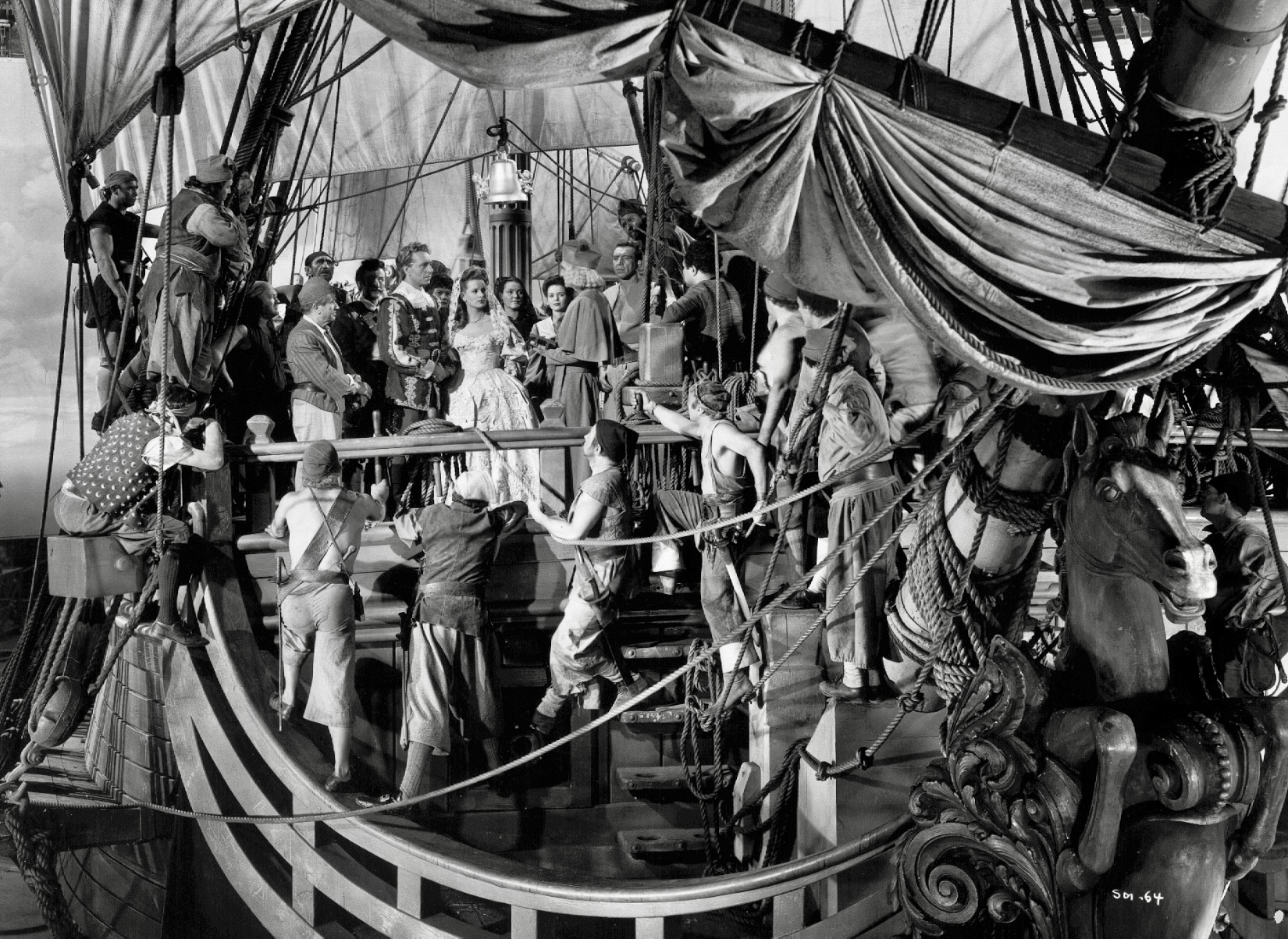 SYNOPSIS: Laurent Van Horn (Paul Henreid), captain of a Dutch ship, is forced to dock at a Spanish port to make repairs to his vessel but is imprisoned by Don Alvarado (Walter Slezak), the Spanish governor, and sentenced to hang for trespassing. While awaiting execution, Laurent meets other unfairly incarcerated prisoners and together they stage a jail breakout, escaping to safety. Five years later, Laurent has become “The Barracuda,” an infamous pirate who plunders Spanish ships. When he learns that Francesca (Maureen O’Hara), Don Alvarado’s bride-to-be, is arriving by boat from Mexico to be married, he sets a trap, abducting her and setting in motion his revenge for the governor’s past mistreatment of him.
