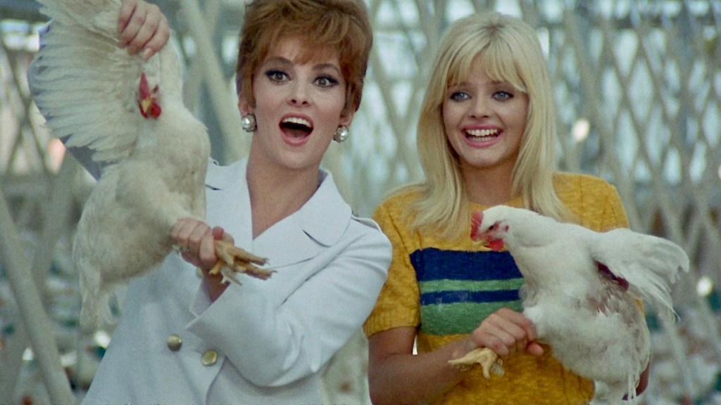 Maybe giallo is too specific a film genre for this movie because it is in a class of its own and works as a violent crime thriller but also as an erotic melodrama, black comedy and a satire on scientific experimentation and marketing. If you tried to describe the movie to friends they’d probably swear you dreamed it or are running a high fever but no, this bizarre, fascinating and once obscure giallo actually exists in various titled versions. The original Italian release title was La Morte Ha Fatto L’uovo (1968), but it has been distributed under such monikers as Plucked!, A Curious Way to Love and Death Laid an Egg, which is the more common title. So what’s with the chickens? The film is set, for the most part, in a poultry factory where a new breed of chicken is being produced in an experimental lab. The opening credits, featuring science classroom footage of egg fertilization, embryos and microscopic life forms prepare you for this strange new world.