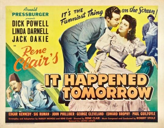 Film scholars generally agree that the silent era offerings (Entr’acte, Le Voyage Imaginaire) and early sound films of Rene Clair (Under the Roofs of Paris, Le Million) are the French writer-director’s finest work and deserve their exalted position in the history of cinema. But one shouldn’t discount the movies Clair made during his brief tenure in Hollywood from 1941 to 1945 where his subtle wit, sophistication and visual style were second only to the work of Ernst Lubitsch. The Flame of New Orleans (1941) with Marlene Dietrich and I Married a Witch (1942) starring Fredric March and Veronica Lake are delightful romantic comedies while And Then There Were None (1945) is an inventive adaptation of Agatha Christie’s thriller, Ten Little Indians. Much more underrated and lesser known is Clair’s It Happened Tomorrow (1944), which returns to the fantasy realm of earlier work like The Ghost Goes West (1935) and I Married a WitchContinue reading