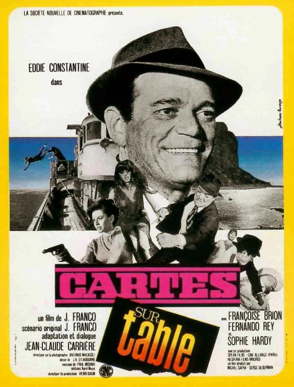 Imagine a science-fiction influenced spy thriller about humanoid assassins directed by Jess Franco with a screenplay adaptation by Jean-Claude Carrière (a frequent collaborator with Luis Bunuel), a cool jazz score by Paul Misraki (Alphaville, Le Doulos, Les Cousins) and an international cast featuring Eddie Constantine, Fernando Rey and Francoise Brion. It sounds like a film buff’s fever dream but it actually exists. Released in 1966 during the height of the James Bond craze, Cartes sur table aka Attack of the Robots is a stylish and amusing entertainment that takes a standard world domination-by-madman scenario and infuses it with a cheeky sense of humor. The film will come as a surprise to those who only associate Jess Franco with Eurotrash favorites like 99 Women (1969), Vampyros Lesbos (1971) and Wanda, the Wicked Warden (1977).